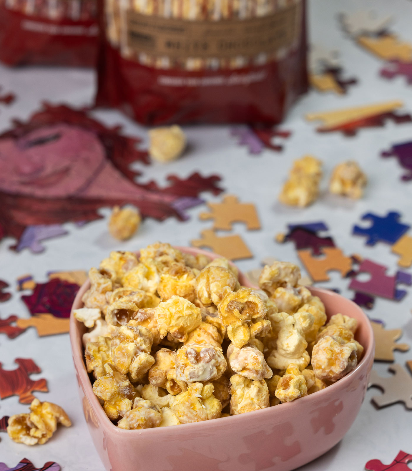 White Chocolate — Soft and decadent on the outside, crisp caramel corn on the inside.